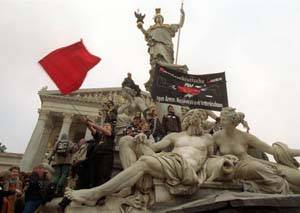 | Mein persönliches OhmMETA war sozusagen im roten Bereich als sich Vertreter der 4 im Parlament vertretenen Parteien am Freitag in der ZIB3 einfanden um über die aktuellen Ereignisse rund um die Machtübernahme der neuen FP/VP Koalition zu diskutieren. Von Seiten der Koalitionsparteien wurde versucht die gesamte Diskussion von Anfang an auf das Thema "politisch motivierte Gewalt" zu lenken. Die Vertreterin der VP ereiferte sich sogar zum Beweis für den Terror (!) einen Backstein vor der Kamera zu präsentieren, der gemäß ihrer Aussage von aufgebrachten Regierungsgegnern durch ein Fenster der VP Zentrale geworfen wurde. Selbstredend, daß auch Herr Westentaler in diese Kerbe schlug und von durch die SPÖ aufgwiegelten Linksextremen sprach. |
